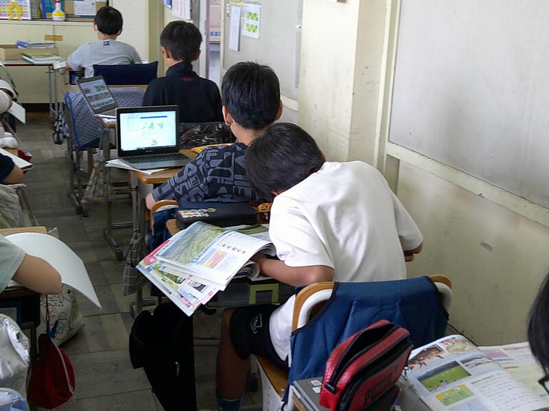 クラスの中で、高い土地(群馬県嬬恋村)を調べる子と低い土地(岐阜県梅津市)を調べる子で選択して、調べ学習を行っています。