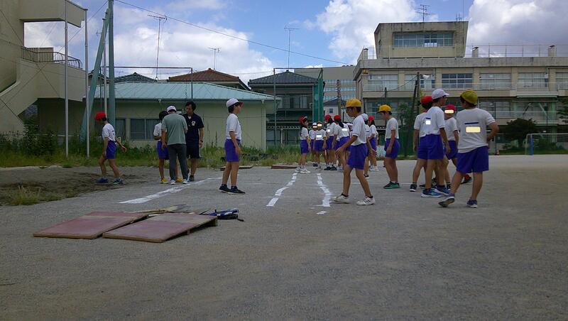 今日は、リズミカルな助走にするためのスタート位置を決める練習をしています。