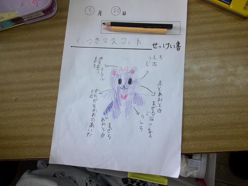 紙ねん土に磁石をつけて、形や色を工夫していきます。まず、今日はその設計書づくりです。紙ねん土の組み合わせ方や磁石の特徴もいかして設計書を作成していました。
