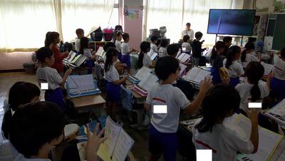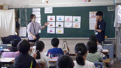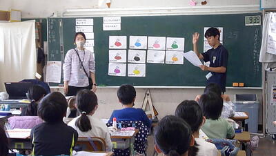 ヒントとなるキーワードを英語で伝え、子供たちは絞り込んでいました。