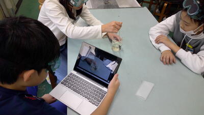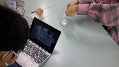 溶ける様子をじっくり観察しています。実生活と結び付けて考える子供のつぶやきや発言もあって、非常に濃い学習をしています。