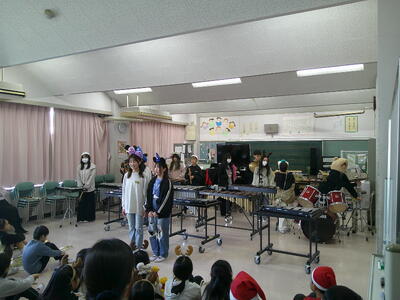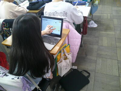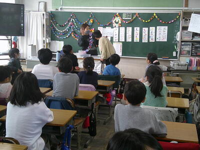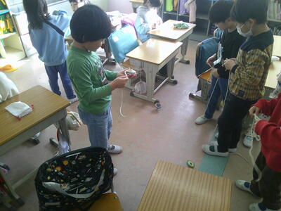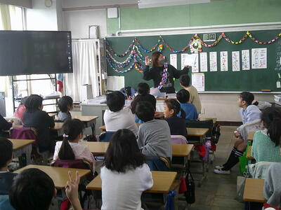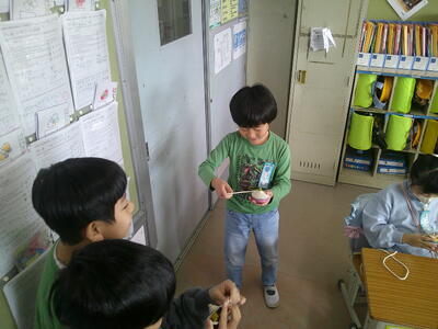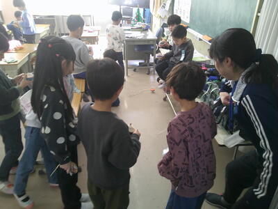 お楽しみ会をしていました。これは、班ごとのしりとりゲームの様子です。