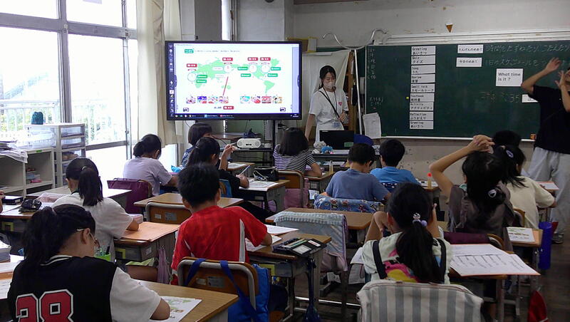 「時間をたずねたり、答えたりしよう」を学習のめあてに取り組んでいます。自分の1日の様子を伝えるために、どのような言葉が必要なのか、動画を視聴しながら聞き取っています。