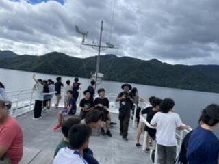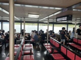 遊覧船に乗車しまた。子供たちは、一目散にデッキに出てきました。