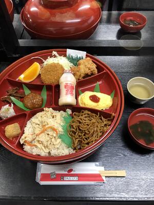 日光江戸村に入り、各自でお昼を食べ始めています。