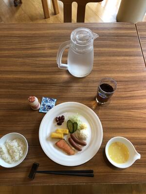 朝の体操をし、朝食も食べ、現在は退所の準備です。
