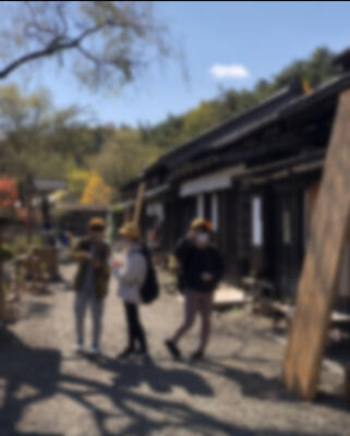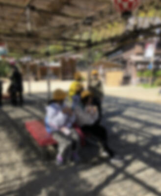 日光江戸村に入り、各自でお昼を食べ始めています。