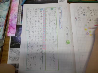 「白いぼうし」の物語文の学習です。ここでは、場面の移り変わりに着目しながら登場人物の行動や気持ちを捉える力を付けます。