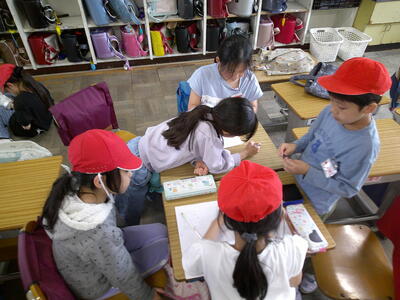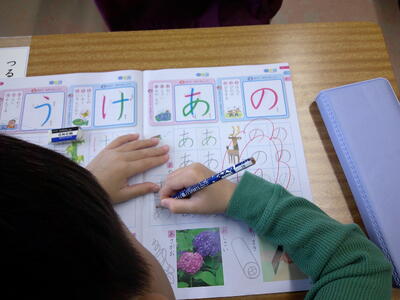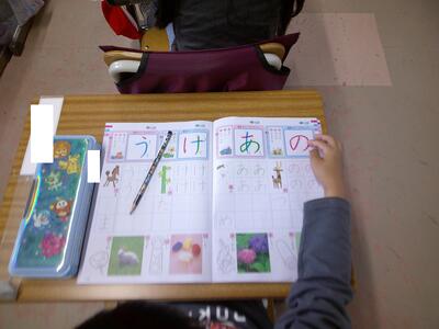 今日は「あ」「の」の学習です。子供たちが集中して取り組める工夫をしながら、学習を進めています。