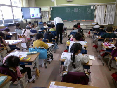 今朝、子供たちの登校時の天候を心配していましたが、雨も降らず、風も強くなかったのでほっとしました。今日は定例研のため、全校4校時日課で下校です。