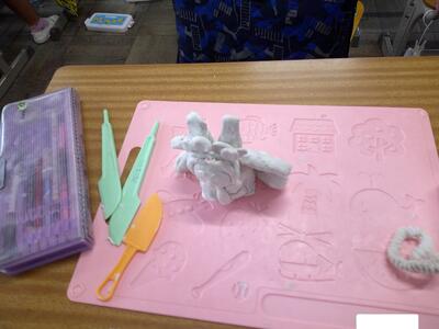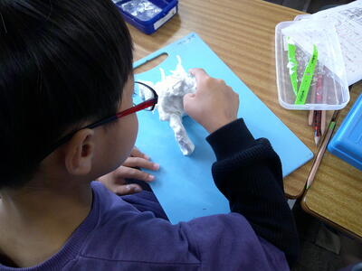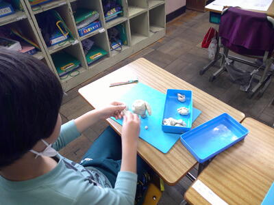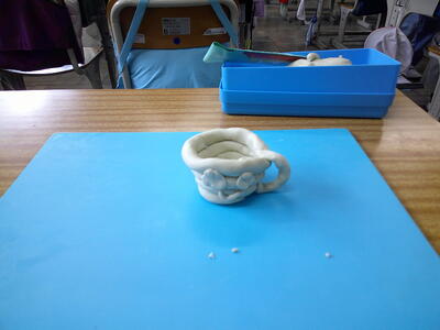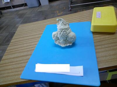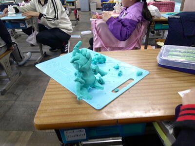 大きな固まりから、謎の生き物「むぎゅたん」を作っていきます。