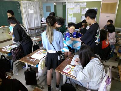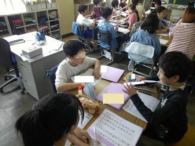 登場人物の行動や会話から性格を想像したり、複数の叙述を基に登場人物の行動や気持ちを捉えることができるよう、場面全体を繰り返し読むように活動しています。