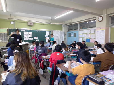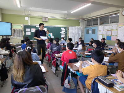 自己紹介を聞き取ろうが本時のめあてで活動しています。