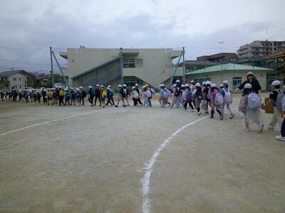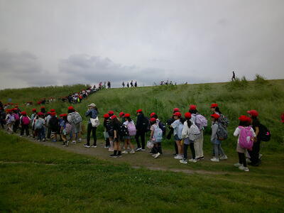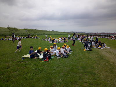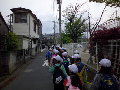 今日は全校歩き遠足でした。朝、登校してくる子供たちの表情はとてもにこやかで、それこそ、重たいにも関わらず、たくさんの段ボールを抱えて、ボールも持って登校する子供もいました。一足早い、こどもの日です。