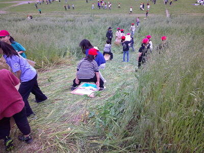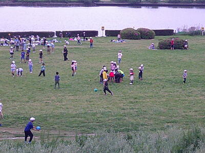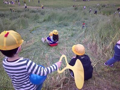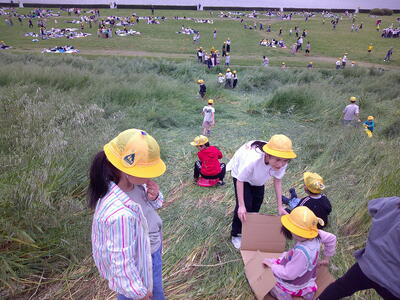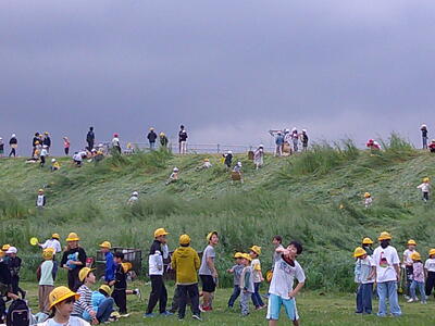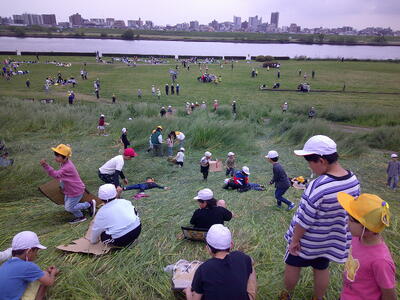 芝生の滑り台は、大人気!雑草がぼうぼうに生えていた所が、あっという間に滑り台に変身!子供たちの力はすごい!