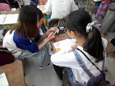 文字の大きさや文字の中心を意識して、筆順にも注意しながら書いていました。