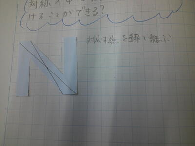 線対称の図形について、対称の軸と対応する点と点を結んだ直線が垂直に交わらない図形が線対称かどうかを考察することを通して、線対称の図形は対応する辺の長さ・角の大きさが等しく、対称の軸と対応する点を結んだ直線が垂直に交わる図形であることを理解すること大切です。
