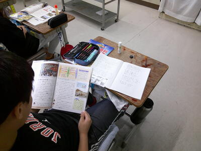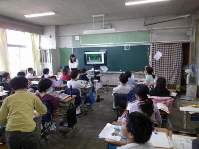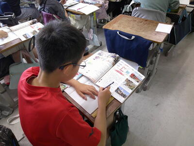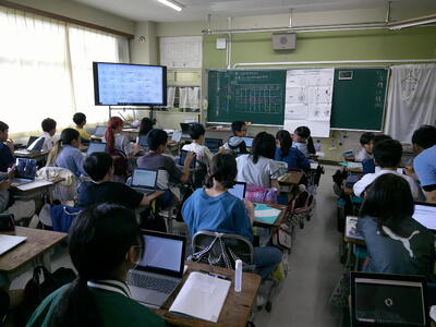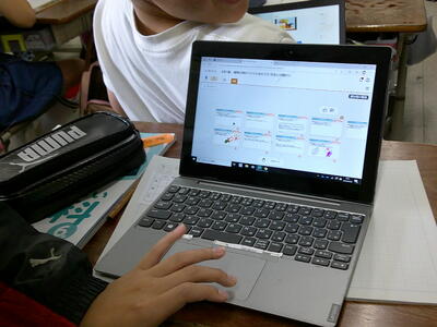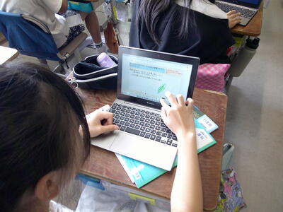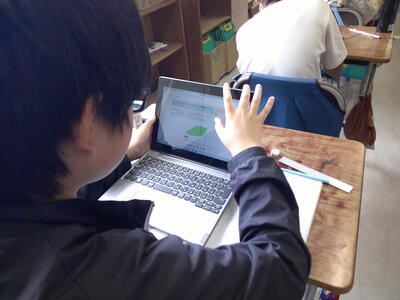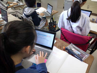 東日本大震災が発生したとき、市や県、国はどのような取り組みをしたのか、各自で調べ学習の時間です。