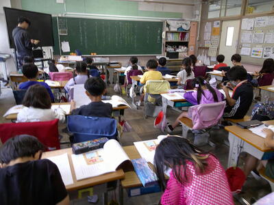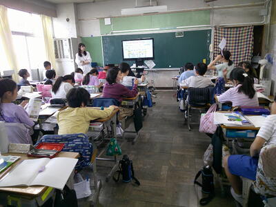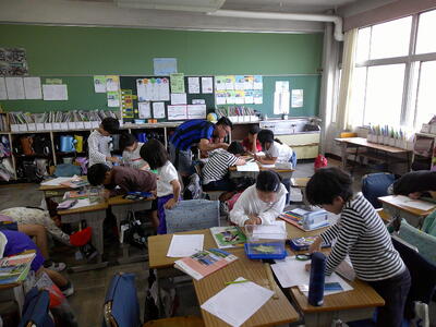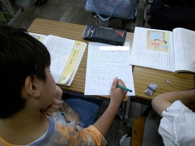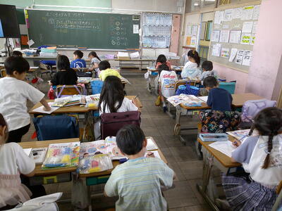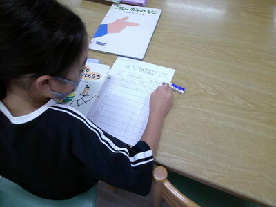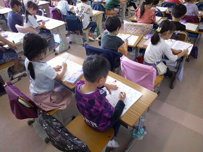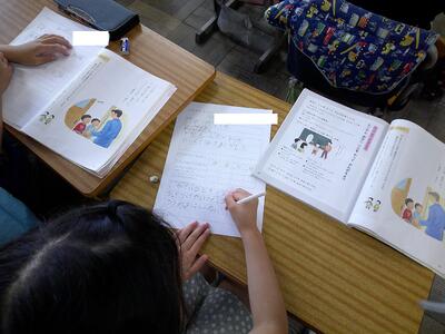 道徳の学習の様子です。「いそいで いても」という教材を読んで、自分たちの学校生活と照らし合わせ、あいさつやことばづかいについて考えていました。1年生のお手本になろうとがんばっている2年生。素敵なお兄さん、お姉さんになれるといいですね。