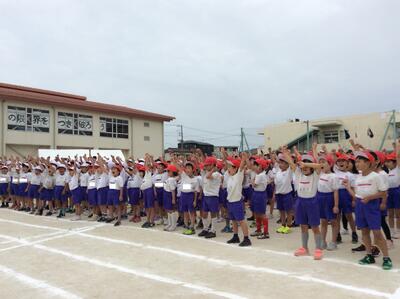 全校で気合を入れて「がんばるぞ!」「オー!」