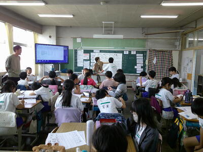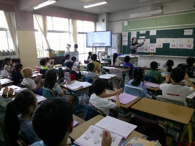 また、教科書を使って消しゴムの数を数えたり、ボールの数を数えたりと、いろいろなものを英語で数える活動を行いました。
