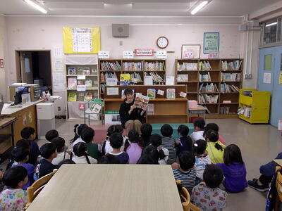 読み聞かせは、声の強弱や登場人物になりきった読み方なので、子供たちが集中して聞いていました。