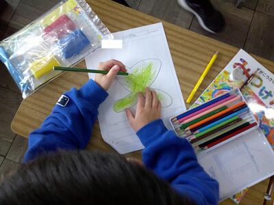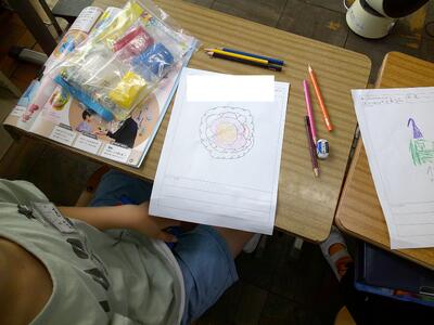 「まごころメダルをプレゼント」とういう単元で、相手意識をもってメダルの形や色の工夫を考えます。