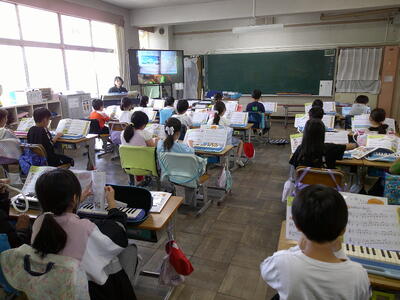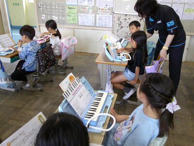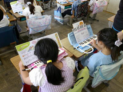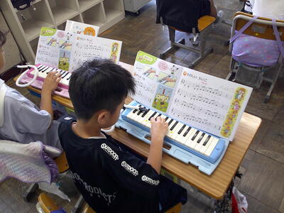 鍵盤ハーモニカを行っています。今日は指の送り方について学んでいました。