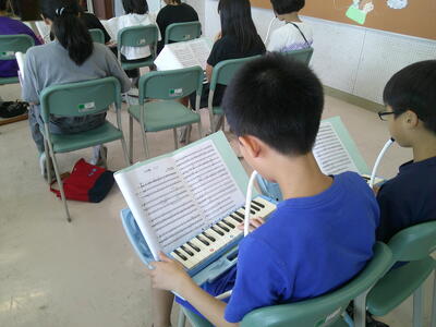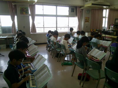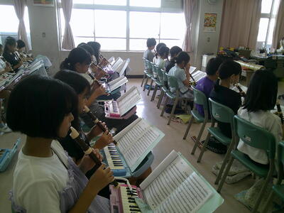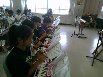 八木節で鍵盤ハーモニカ、リコーダーの練習をしていました。