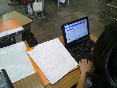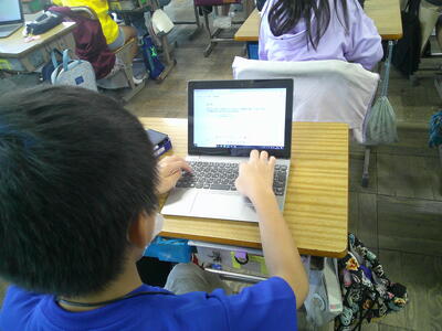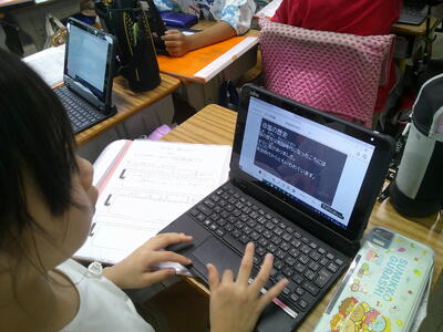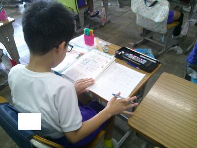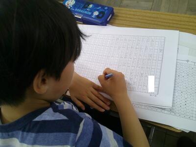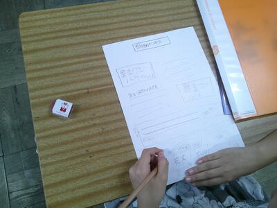 本文を作るのに、タブレットを活用するか、原稿用紙を使うかは子供たちが能力に応じて選んで行います。