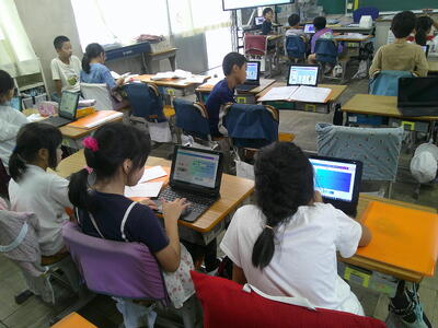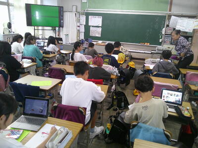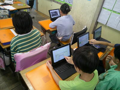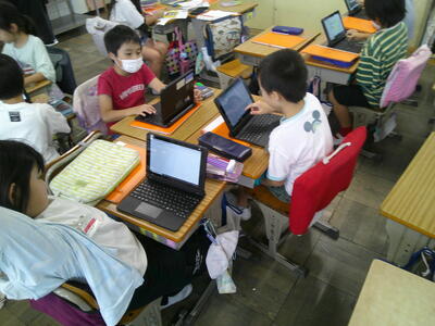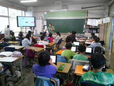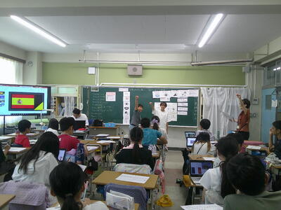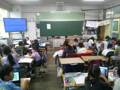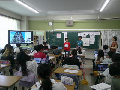 「市川市もっと知らせ隊」をテーマに、子供たちは各学級でグループに分かれ、市川市のいろいろを調べました。その発表に向けて、グループごと活動をしていました。