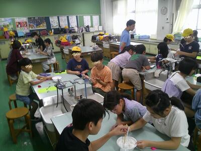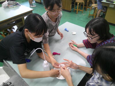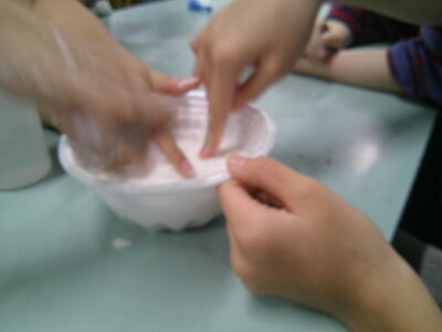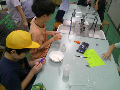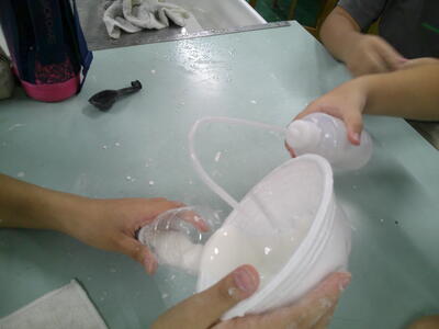 重さの確認です。ラップをしたコップは、最初と重さが変わらない。でも、ラップをしてなければどうなるのか?子供たちは、「変わる」理由は「蒸発するから」と、しっかり答えられていました。