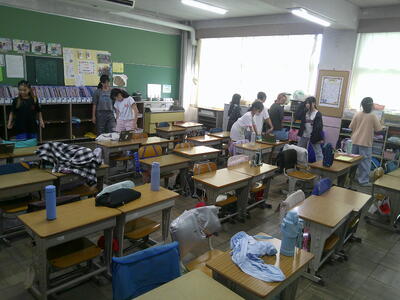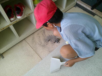 清掃の時間です。いつも感じていることですが、稲荷木小の子供たちはどの子も黙々と掃除に取り組みます。
