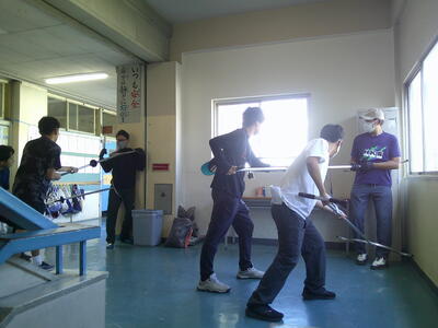 今日は不審者対応訓練を実施しました。市川警察署生活安全課の方を招いて、複数の不審者に対応する訓練を行いました。
