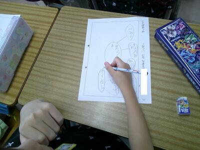 前時までの学習で取り組んだ構成シートに戻って確認したり、文章を肉付けしたり、本文づくりに集中して取り組んでいました。