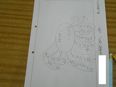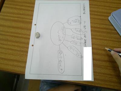 ここでは、無作為に思いついた言葉を組み合わせて作った「不思議な言葉」をキーワードにしてお話の展開を考えていく学習です。