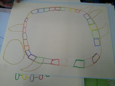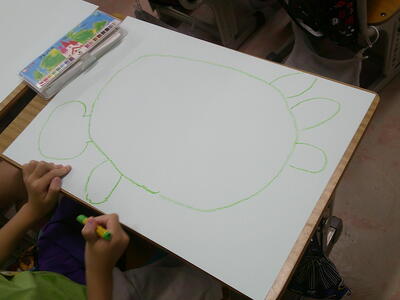 「海のなかまたち」で、カメか魚を選んで描くます。