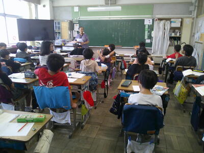 本時の社会科は、千葉大学教育学部付属 教員養成開発センターより、松井 聰 先生をお招きして授業をしていただきました。