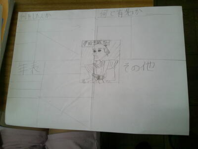 新聞づくりが終わった児童は、伊能忠敬についてリーフレットづくりを取り組んでいます。リーフレットづくりは、国語科の学習で学んだことを活用した言語活動です。