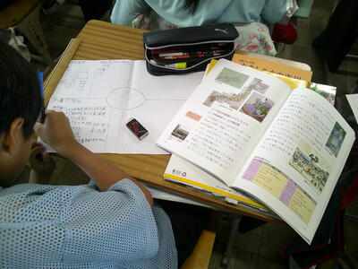 調べ学習した事柄を記事に書くだけでなく、疑問に思った事柄をもう一度、教科書に戻り確認することも、確かな学び、深い学びにしていきます。
