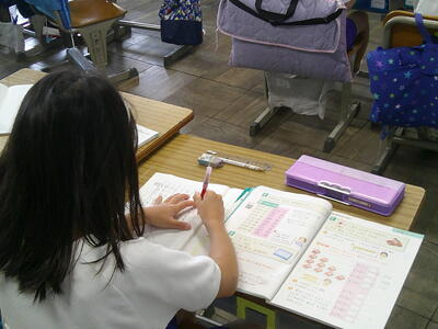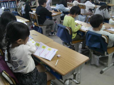 書き込みの練習が終わった子は、ドリルを見ながら空気鉛筆で練習する姿が自然とできて、驚きました。すばらしい!