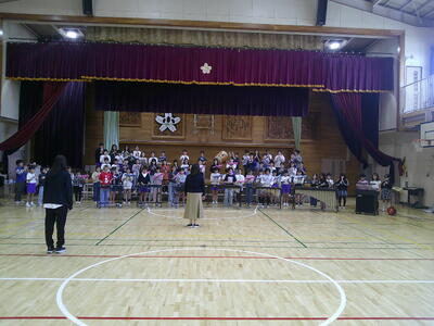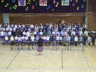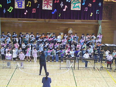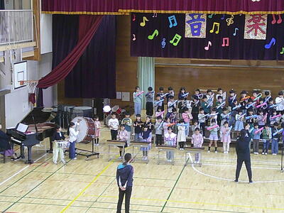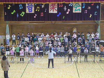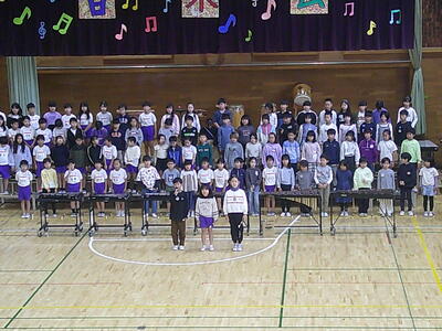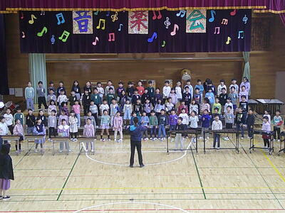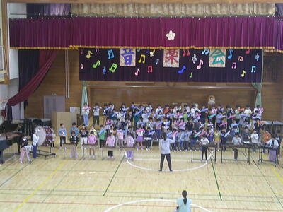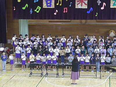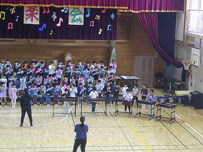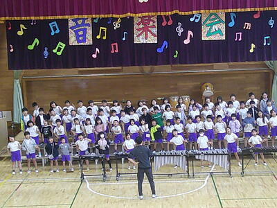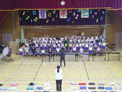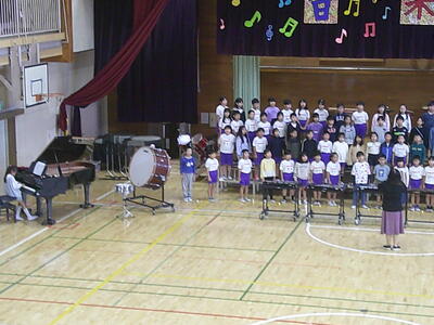 1年生は、初めての音楽会です。自分たちで入場から退場までできるように練習をしています。
