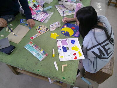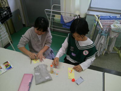 しおり作りに取り組んでいます。