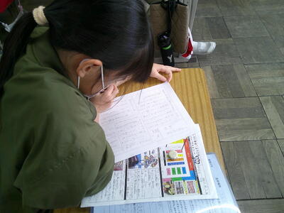 スーパー見学の内容を新聞にまとめていました。