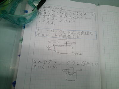 その溶けた様子をイメージ図で表し、予想を立てました。