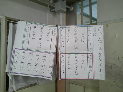 次に、文字を使った歌を活用して、発音練習です。