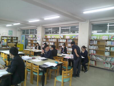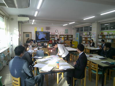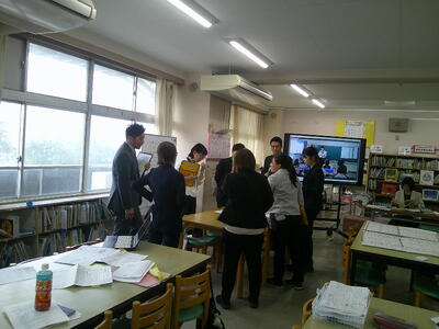 今日の研究授業について、2つに分かれて協議を行いました。