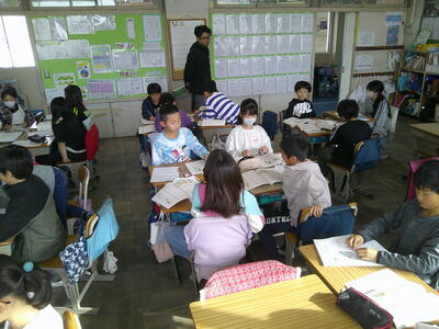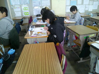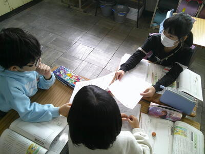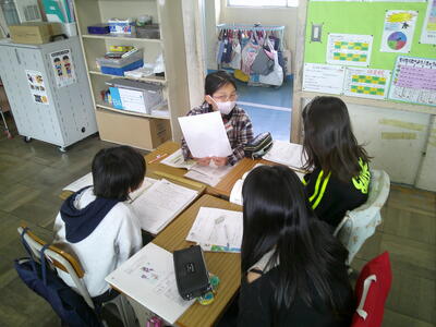 教材「おしえて!なんでも相談室」として、文章にある相談について答えを考えて書いています。どんな答えが書けたでしょうか・・・班で話し合いました。