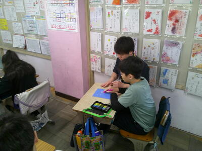 昨日今日と、第六中学校から職場体験として、3名の中学2年生の生徒が本校に来て、子供たちと触れ合っています。いつもの自分たちの立場と違い、担任の先生方のサポート役として子供たちとかかわってくれました。