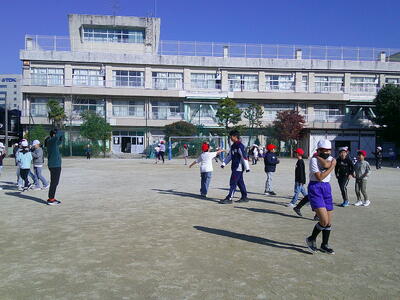 休み時間は子供たちと一緒に遊んでくれて、小学校の子供たちは大喜び。